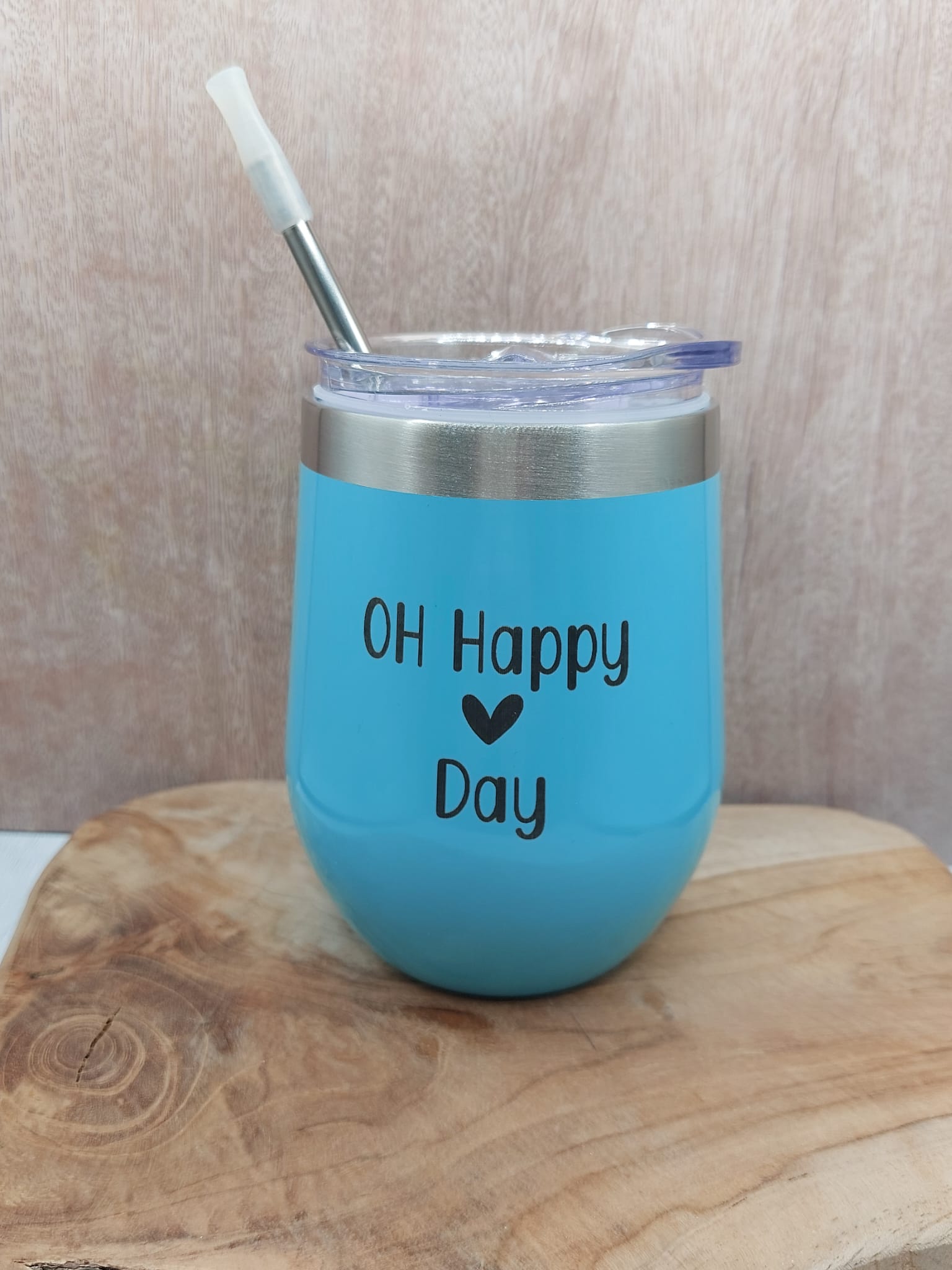 Genuss für unterwegs! Der stilvolle Wein-To-Go-Becher ist nicht nur praktisch, sondern auch ein echter Hingucker. Mit der fröhlichen Gravur „Oh Happy Day“ auf der Vorderseite und einer individuellen Namensgravur auf der Rückseite wird er zu deinem ganz persönlichen Lieblingsstück.