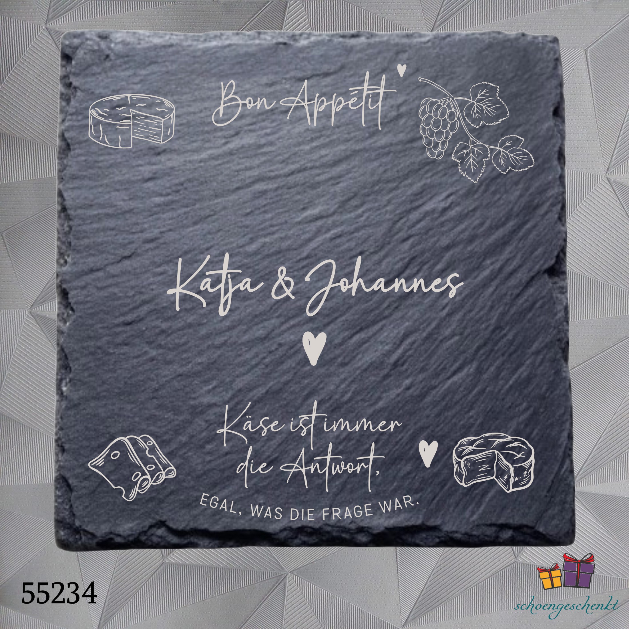 Schieferplatte „Bon Appétit“ 🧀 Für echte Käseliebhaber