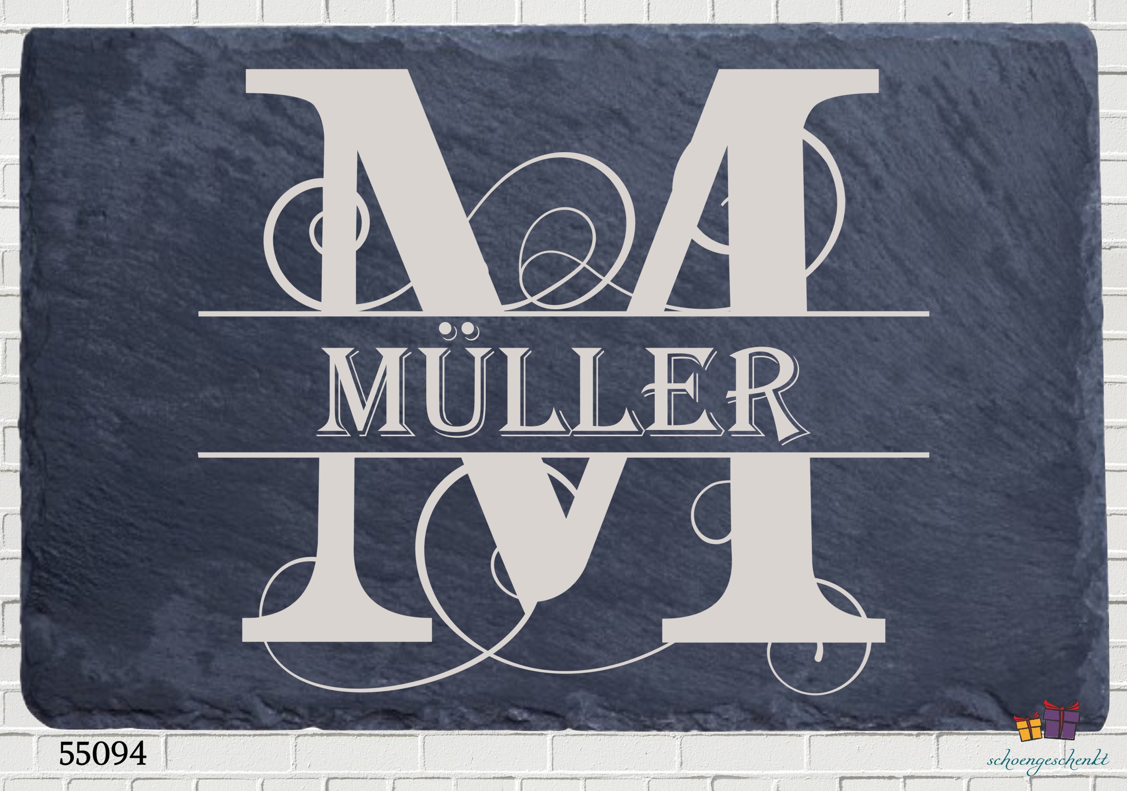 Schieferplatte mit Monogramm – 30×20 cm 😺 30×20 cm