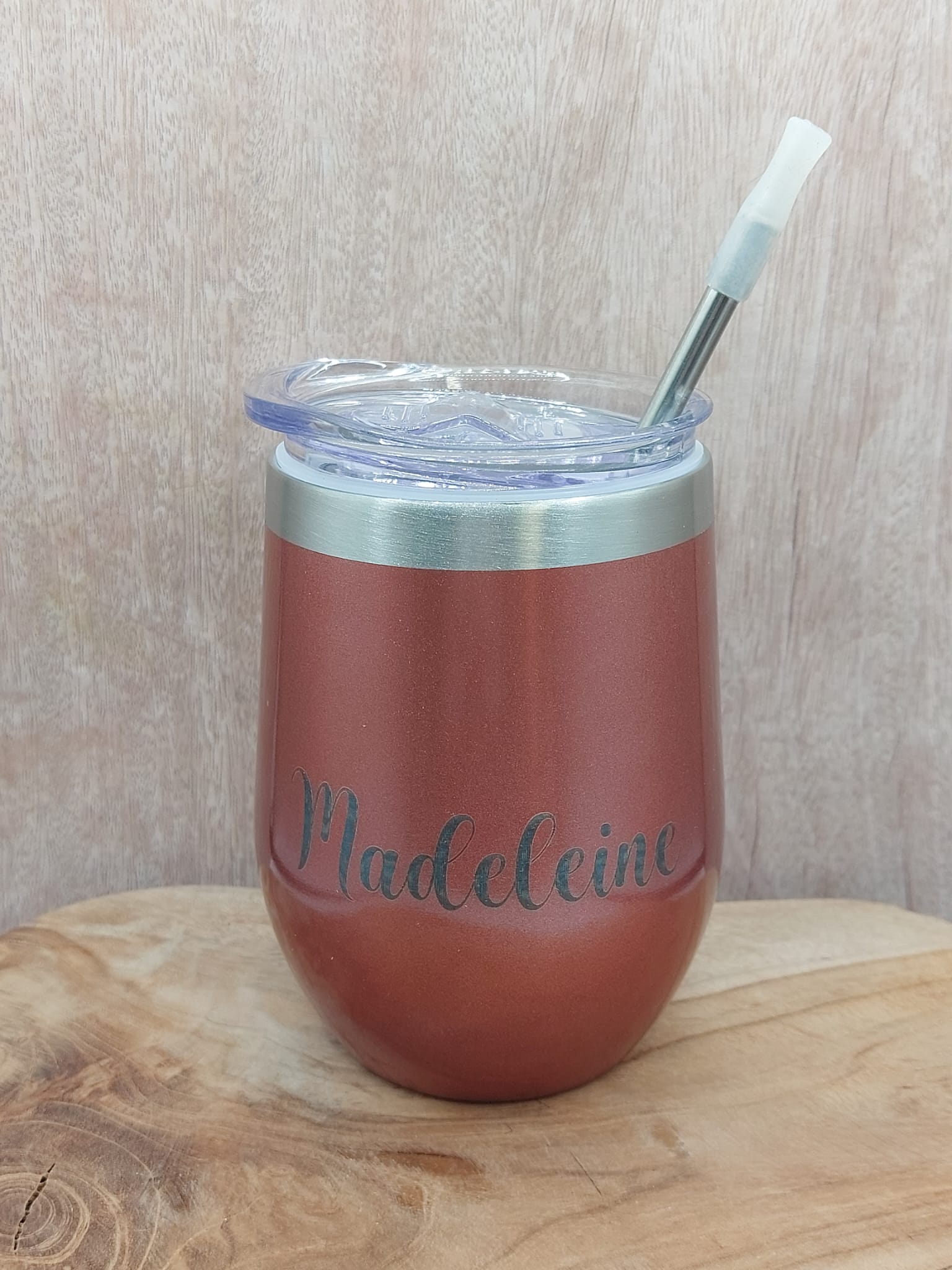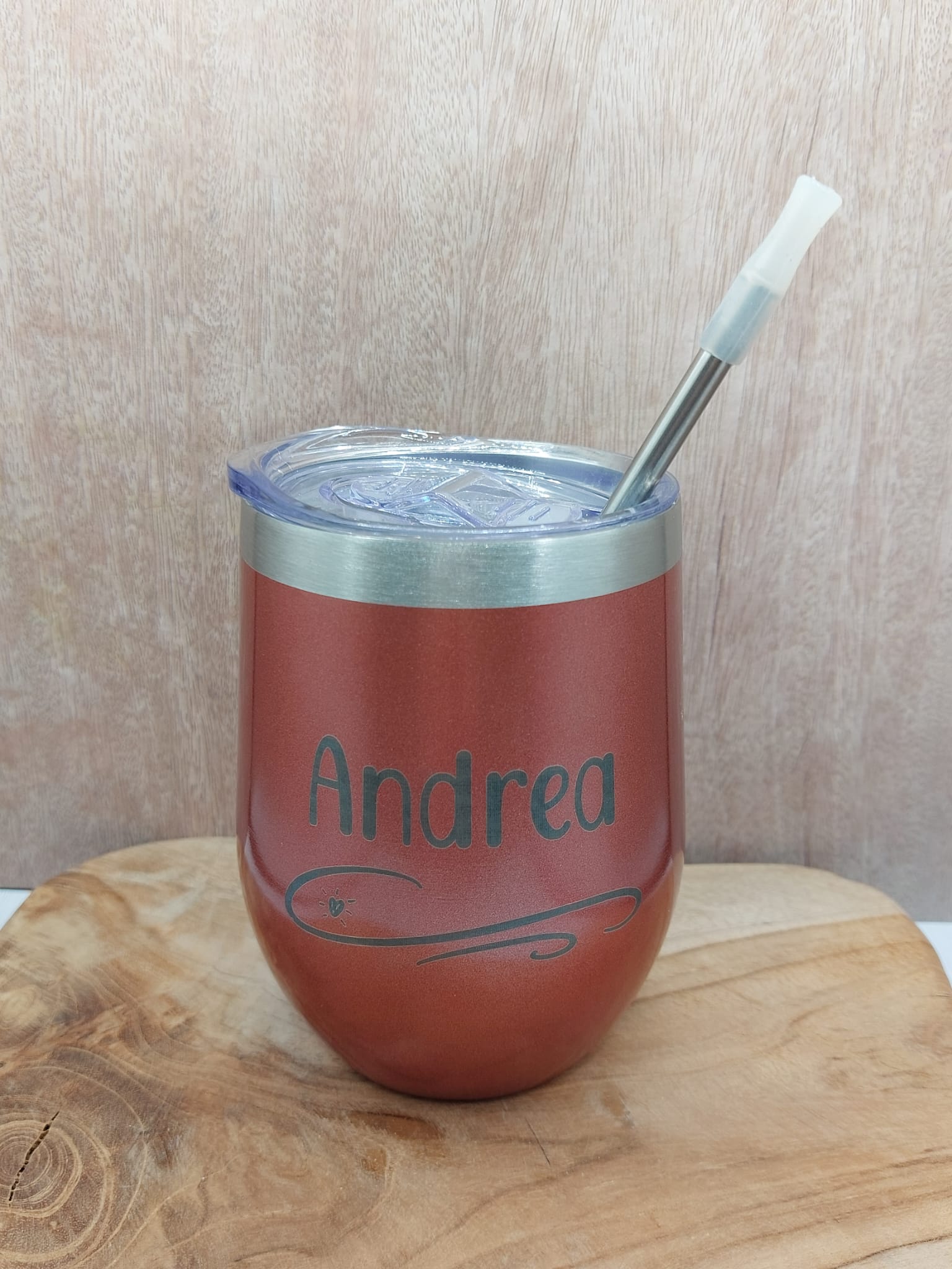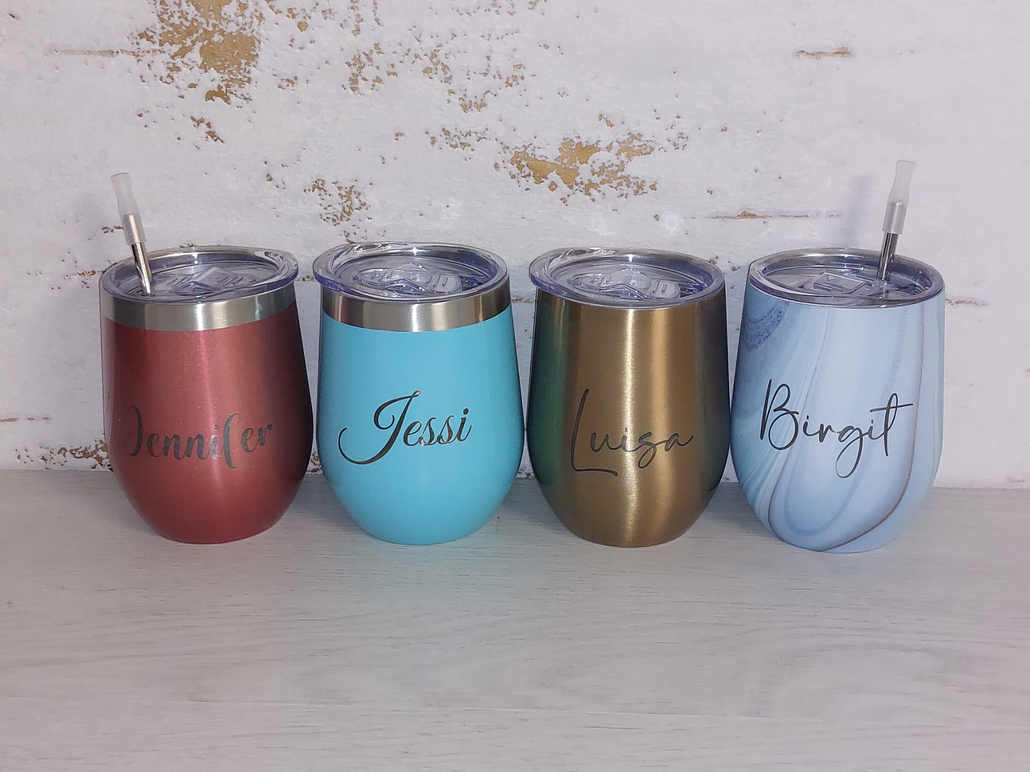 Genuss für unterwegs! Der stilvolle Wein-To-Go-Becher ist nicht nur praktisch, sondern auch ein echter Hingucker. Mit einer individuellen Namensgravur wird er zu deinem ganz persönlichen Lieblingsstück.