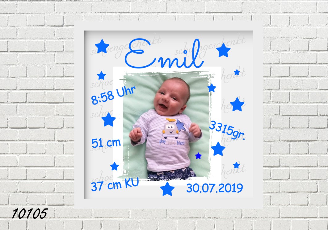 Sie haben die Wahl zwischen liebevollen Designs, die das Motiv perfekt abrunden – von kleinen Füßchen, einem lachenden Jungen, einem leuchtenden Stern oder einem persönlichen Foto. Für werdende Eltern gibt es sogar die Möglichkeit, einen besonderen Moment der Schwangerschaft festzuhalten und vor der Geburt ein erstes Erinnerungsstück zu gestalten.