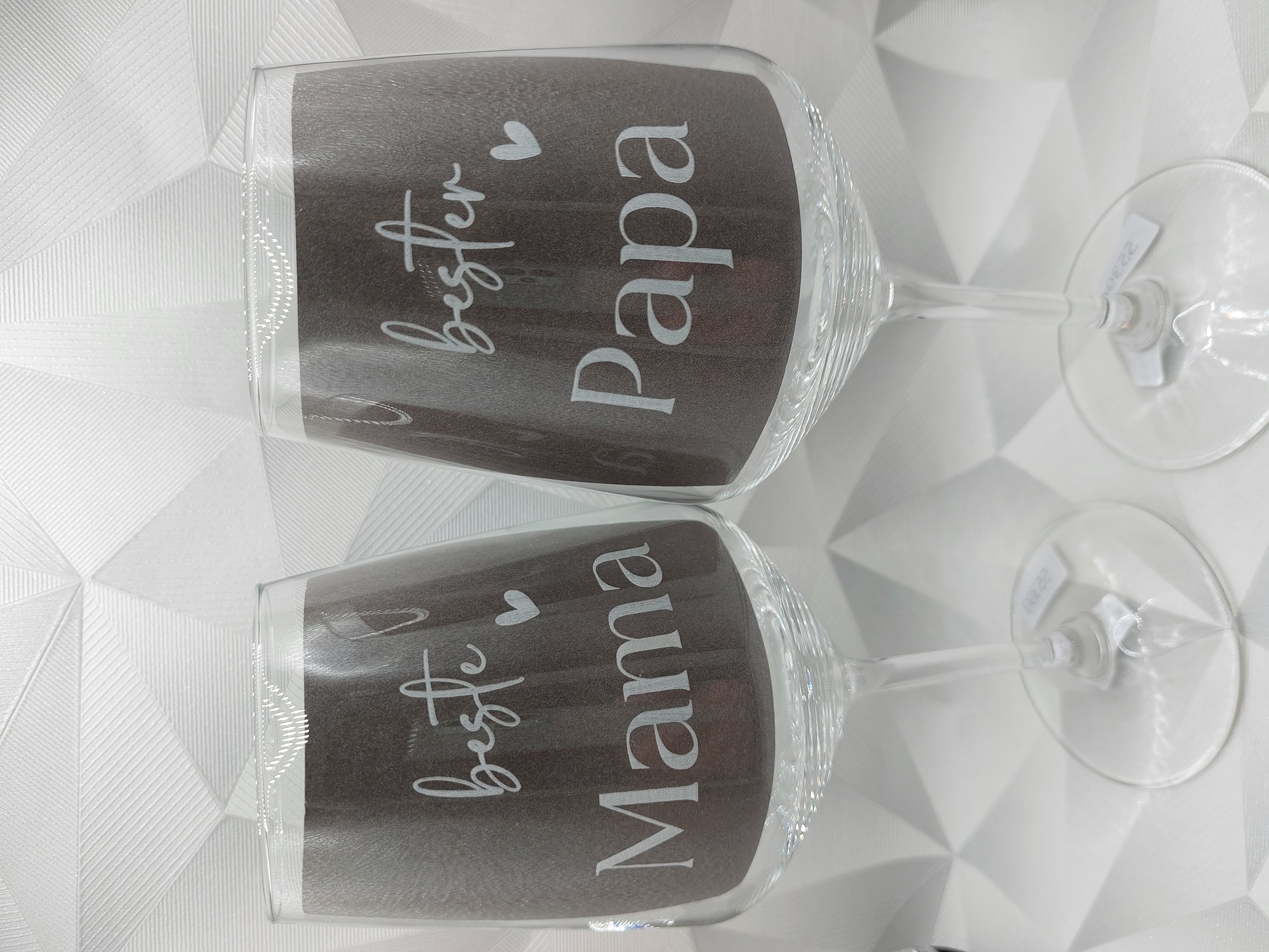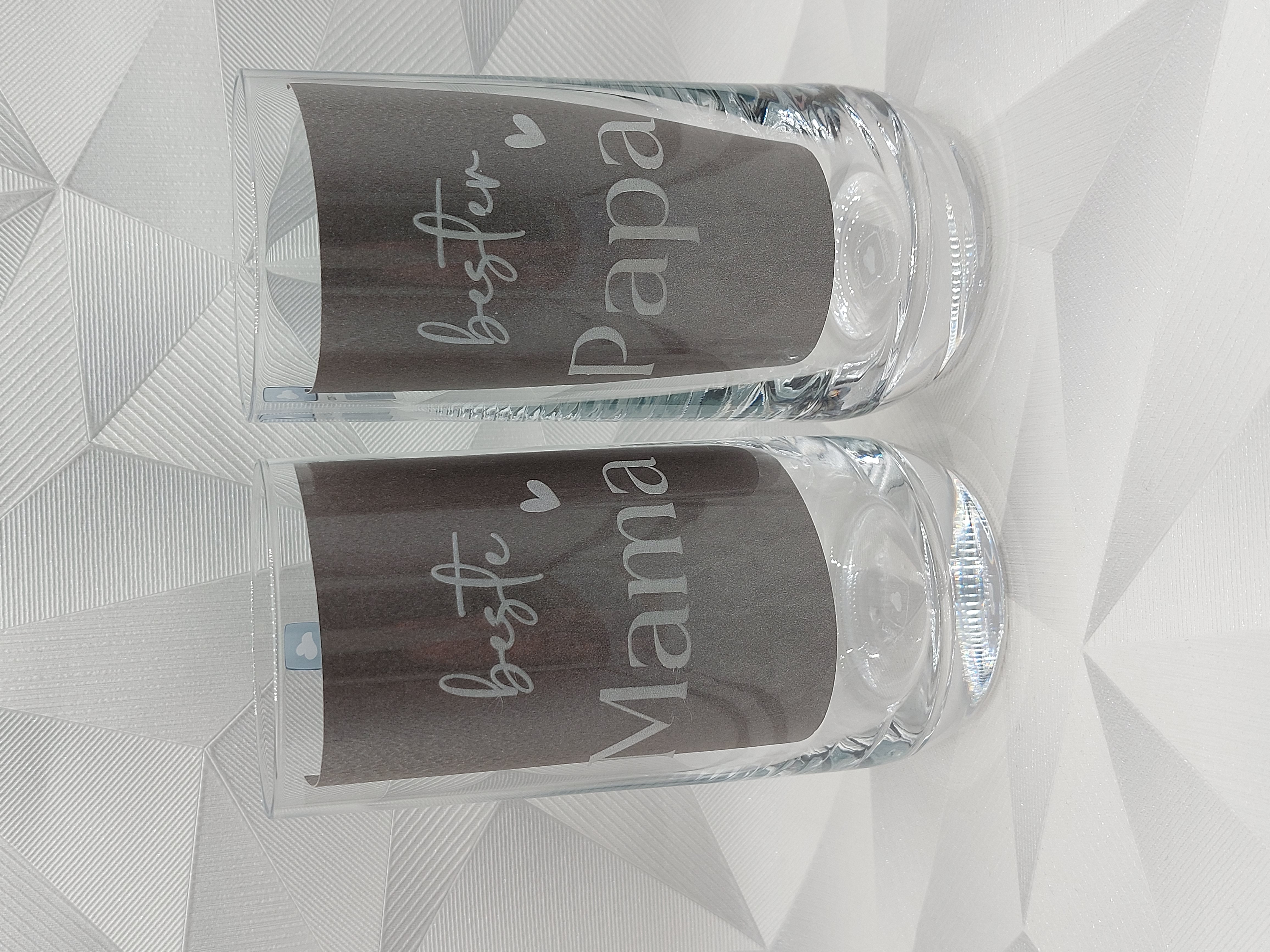liebevoll gravierten Gläser mit der Aufschrift „Beste Mama“