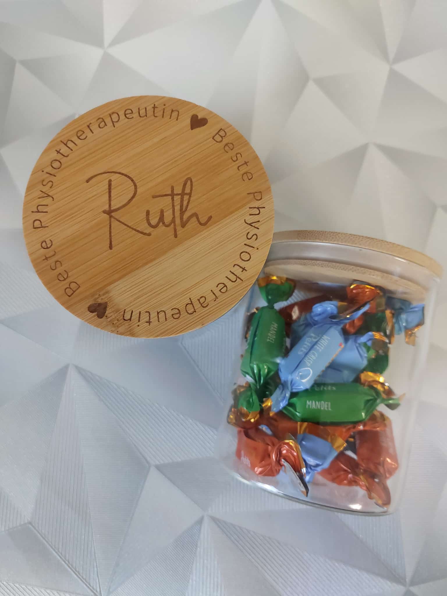 Ob zu Weihnachten, zum Geburtstag oder einfach als kleines Dankeschön zwischendurch – dieses liebevoll gestaltete Naschglas sagt mehr als tausend Worte. Mit der Gravur „Beste Physiotherapeutin“ und dem individuell wählbaren Namen wird es zum ganz persönlichen Geschenk, das Herz und Seele berührt.