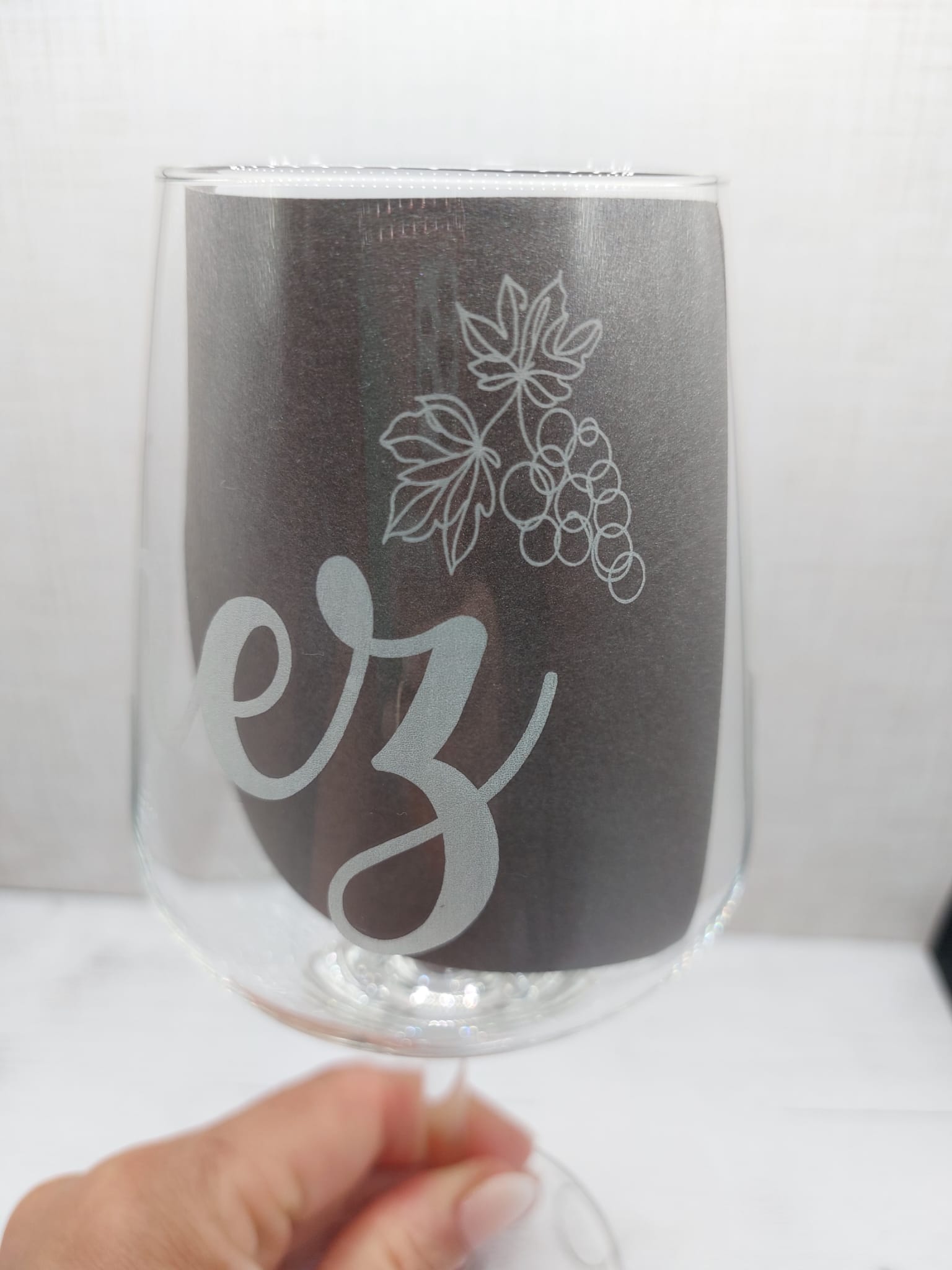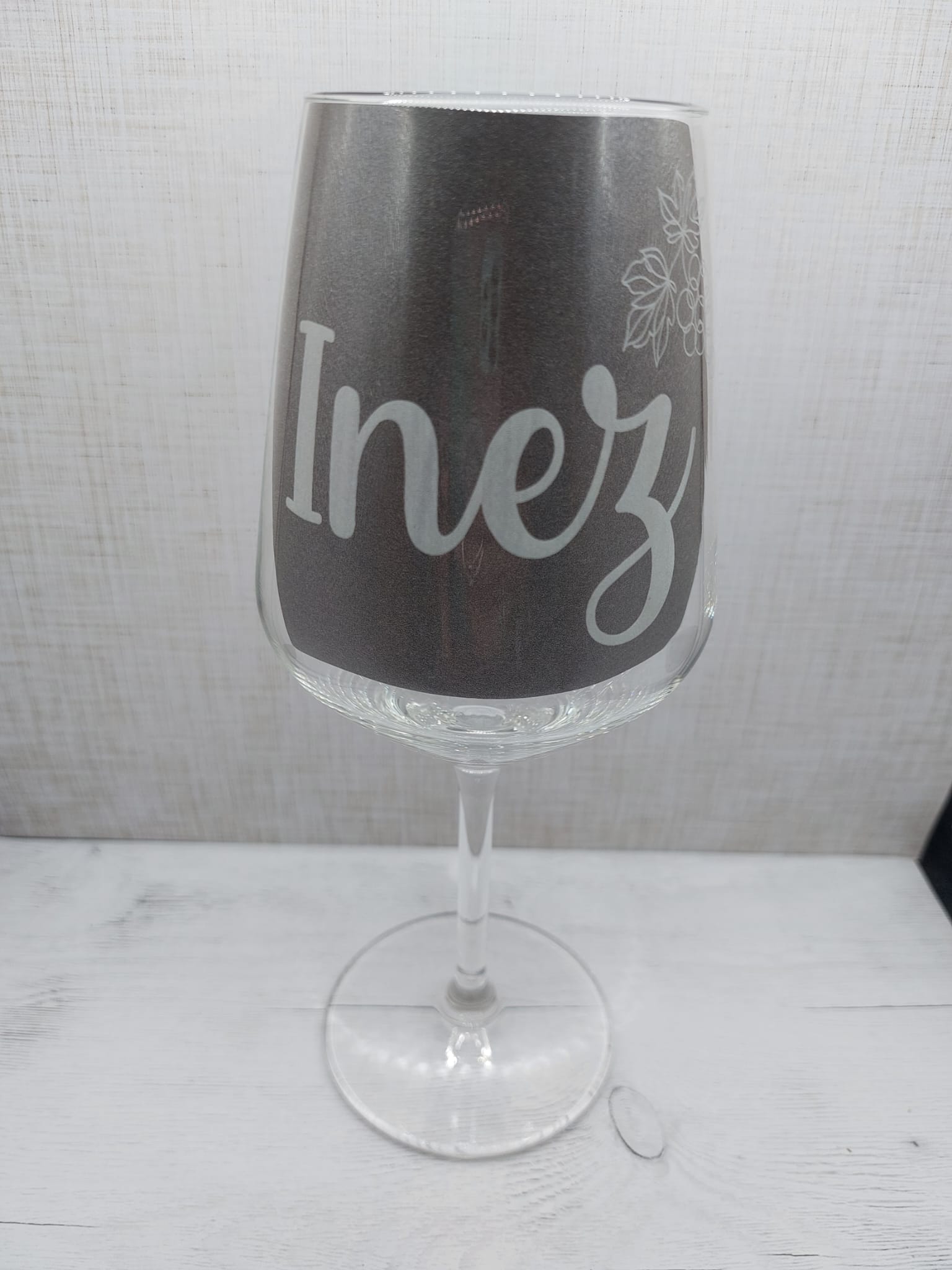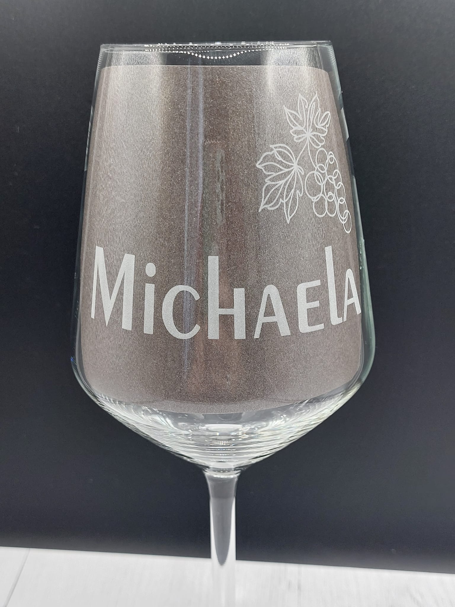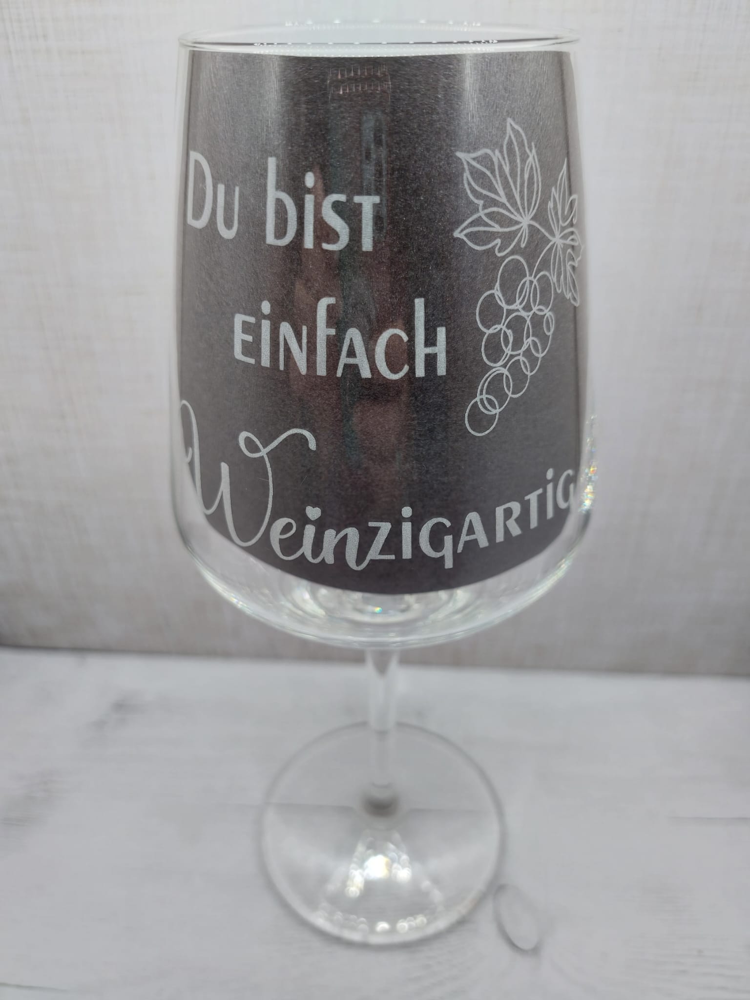 Ein elegantes Weinglas mit individueller Gravur: Verziert mit einer stilvollen Weinrebe, ergänzt durch Namen und dem Zitat: Du bist einfach Weinzigartig. Weinzigartig – wie die Person, die daraus trinkt.🍷