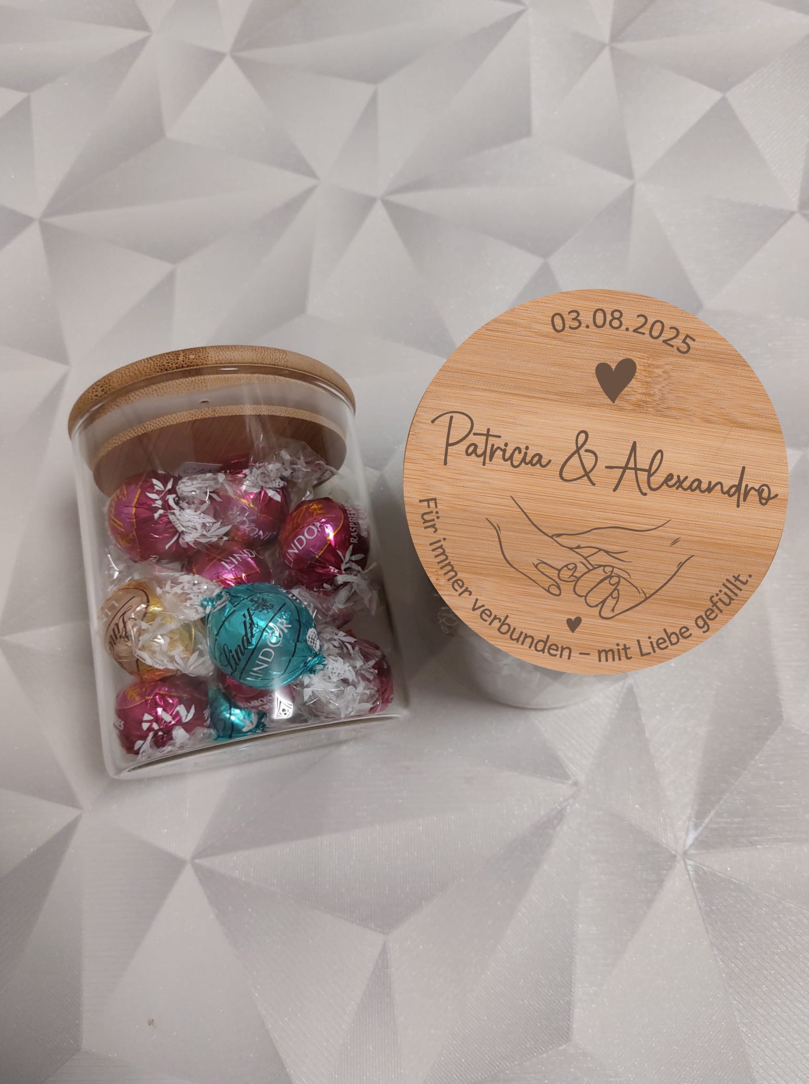 Für immer verbunden – mit Liebe gefüllt 💝 Naschglas mit Gravur als Hochzeitsgeschenk