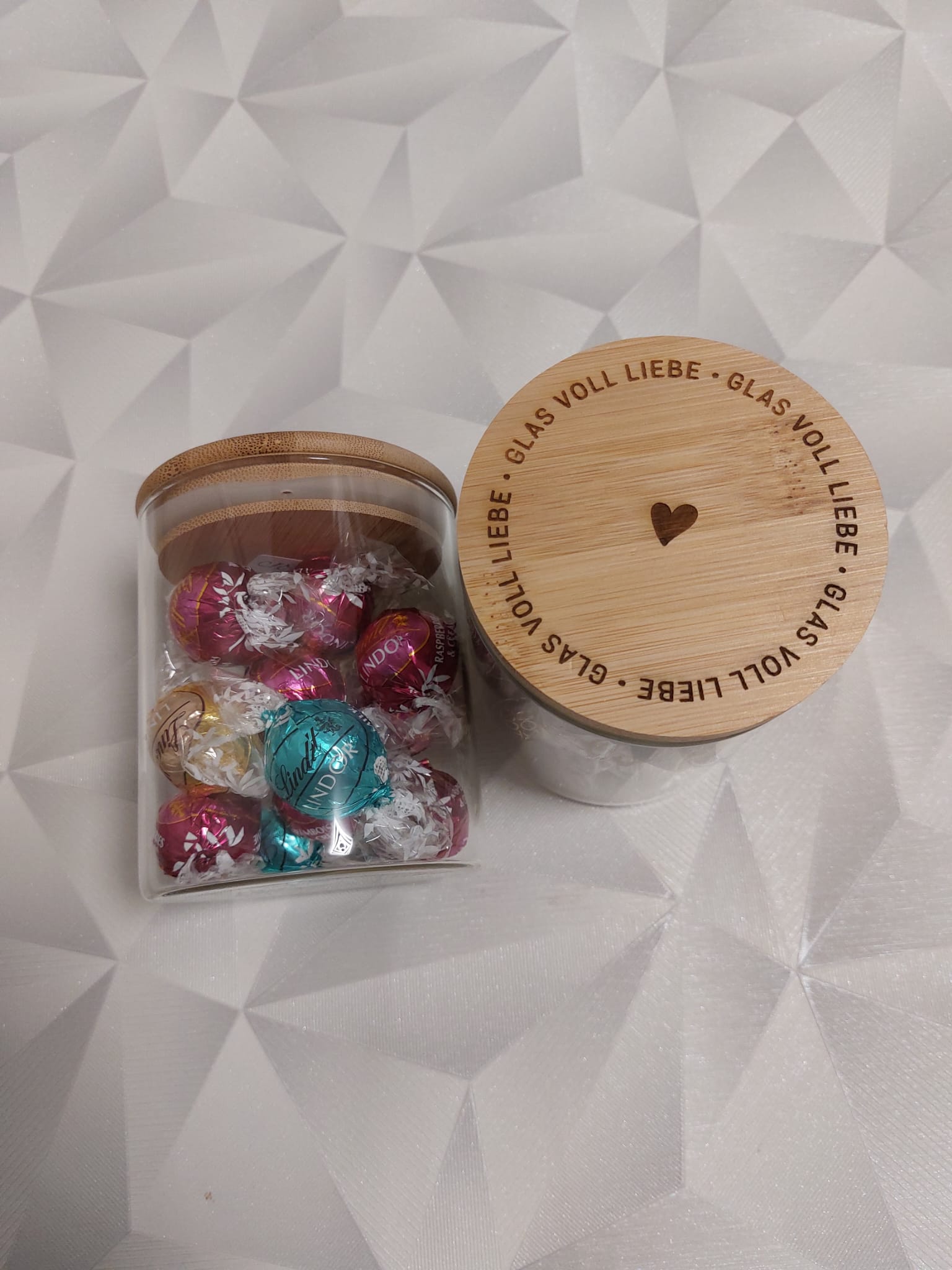 🍪Glas voll Liebe🍪 Naschglas mit Graviertem Bambusdeckel