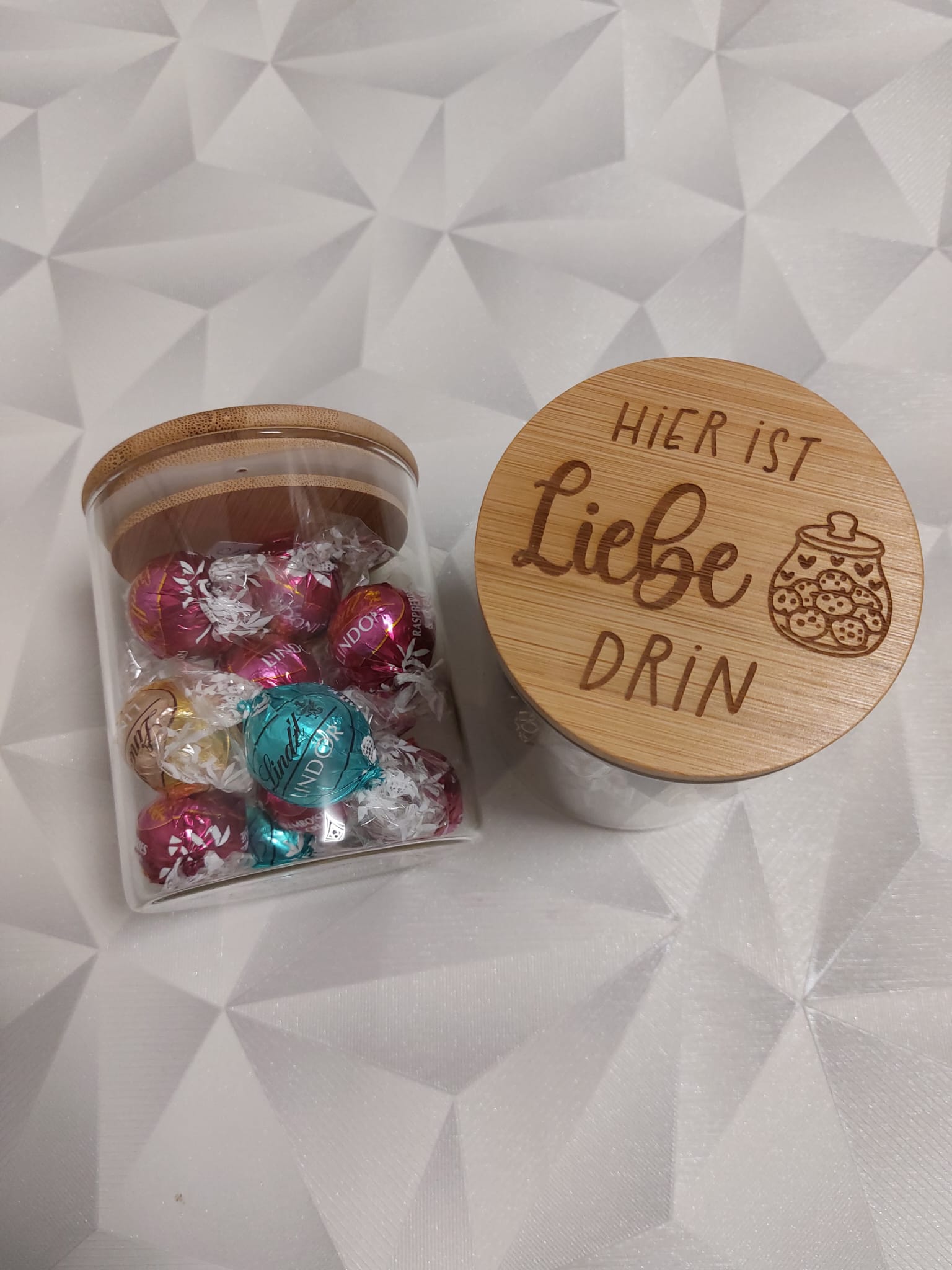 Hier ist Liebe drin🍪 Naschglas mit Gravur für Herzensmomente
