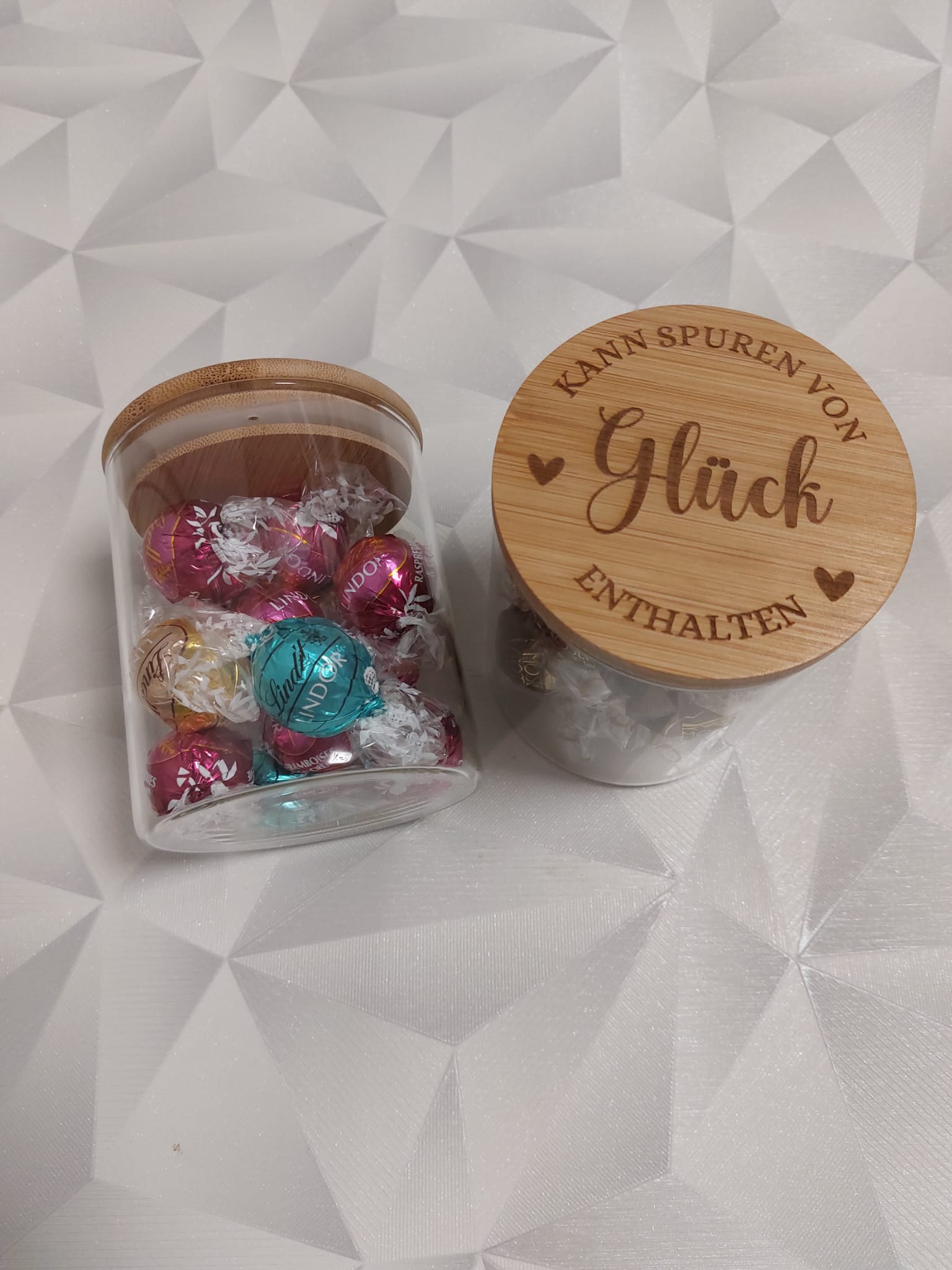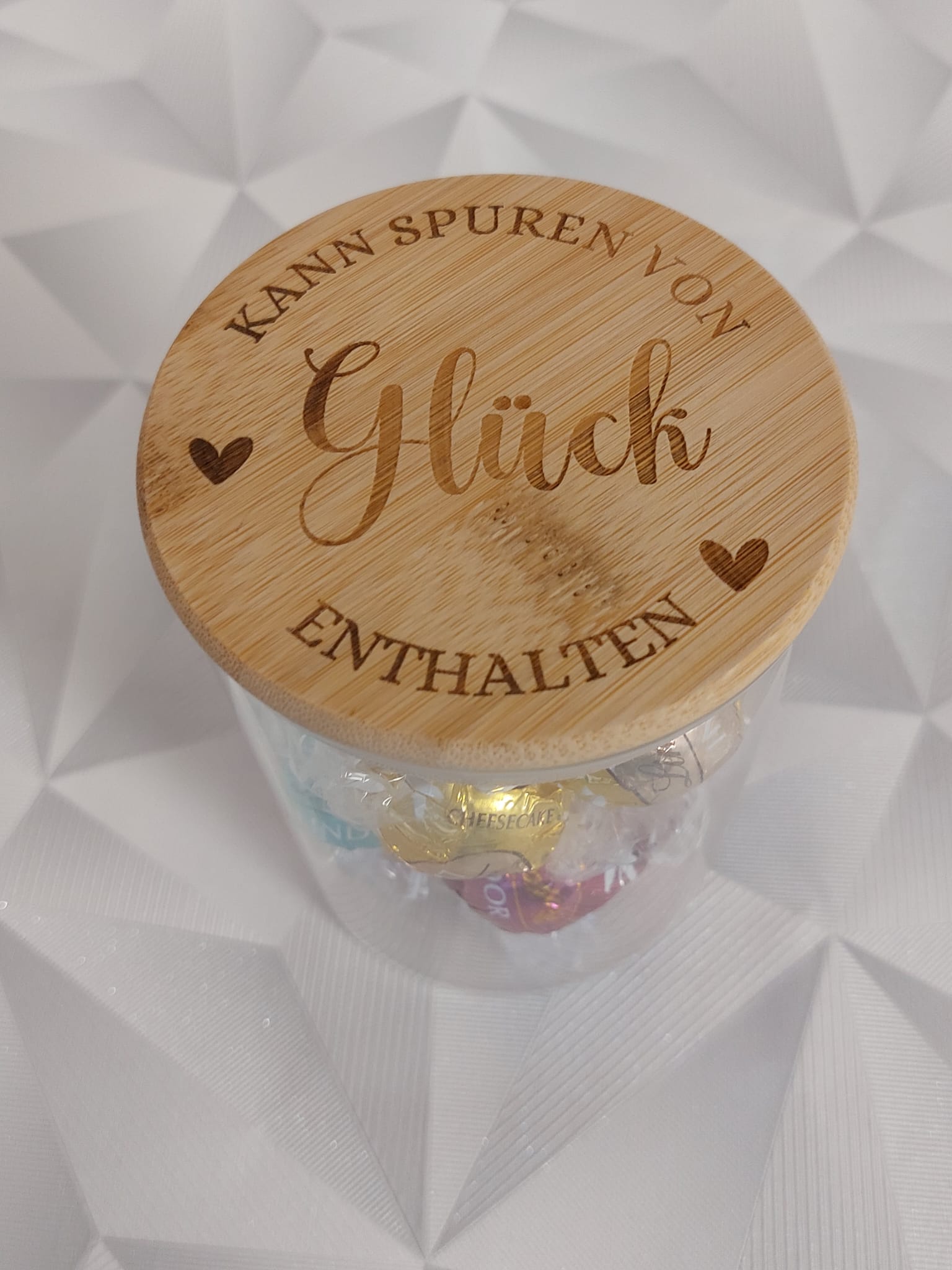 Kann Spuren von Glück enthalten 🍪 Naschglas mit Gravur