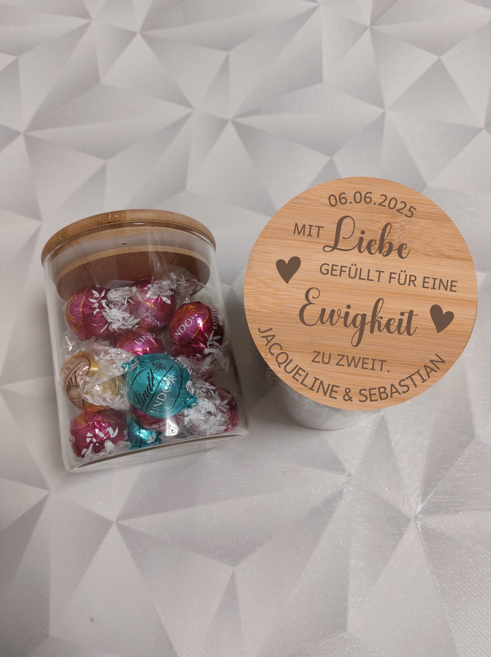Mit Liebe gefüllt für eine Ewigkeit zu zweit. 💝 Naschglas mit Gravur als Hochzeitsgeschenk