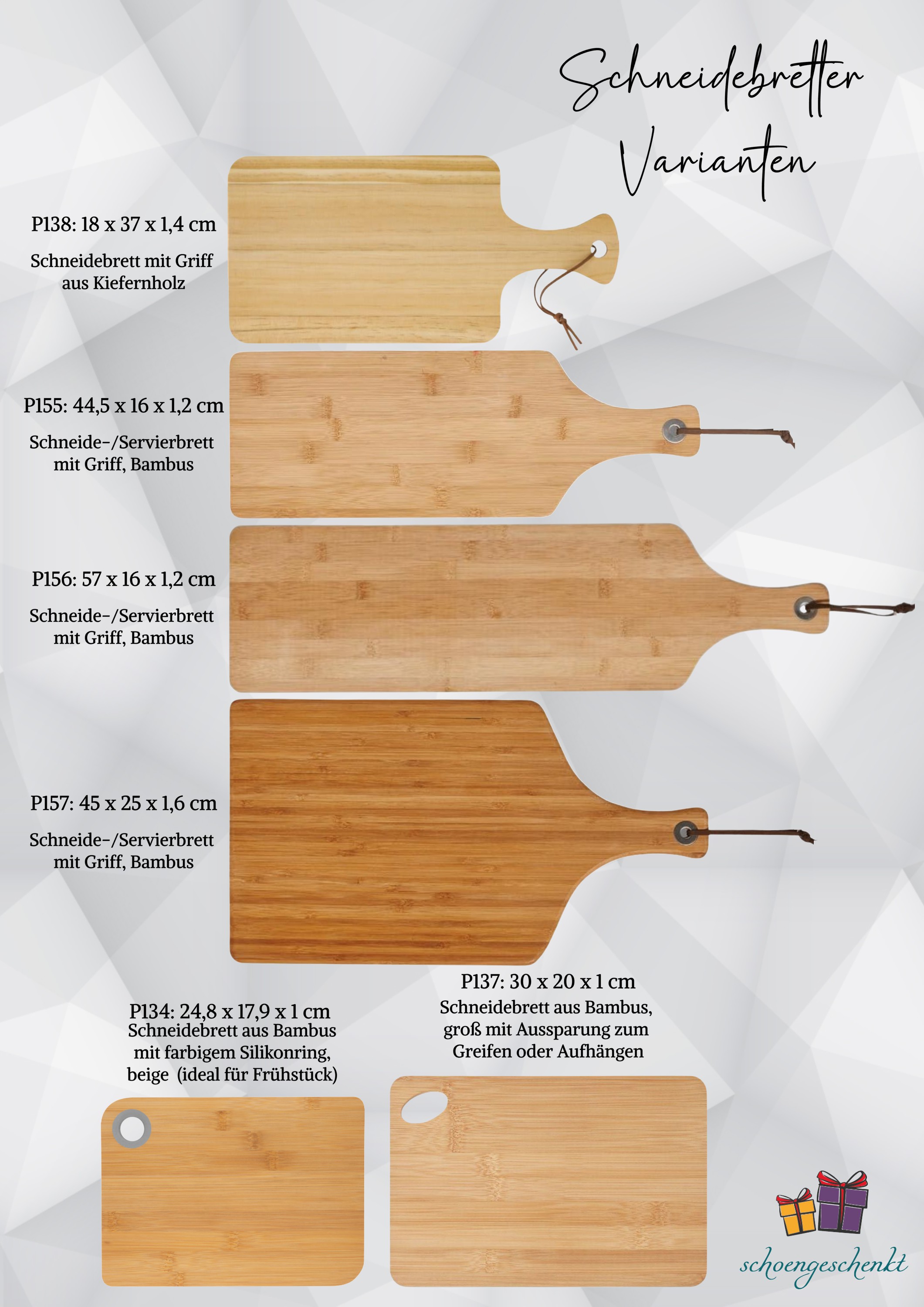 Material: Schneide-/Servierbrett mit Griff, Kiefernholz mit Griff.