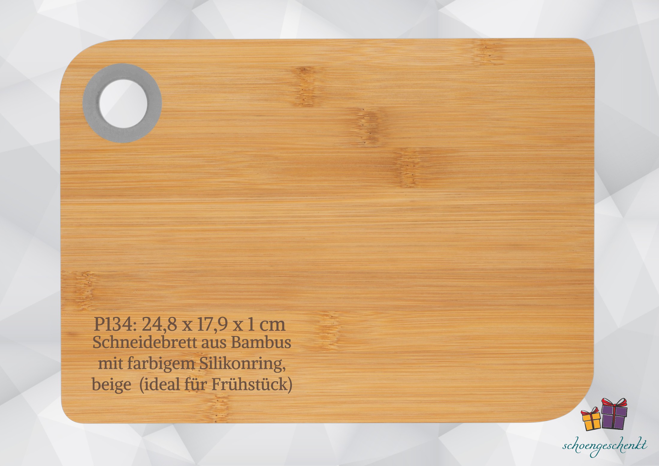 Material: Schneidebrett aus Bambus mit farbigem Silikonring, beige (Ideal zum Frühstücken)
