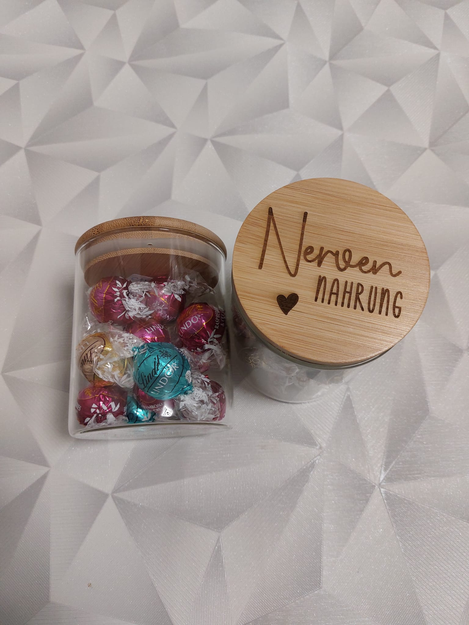 🍪Nervennahrung🍪 Naschglas mit Graviertem Bambusdeckel