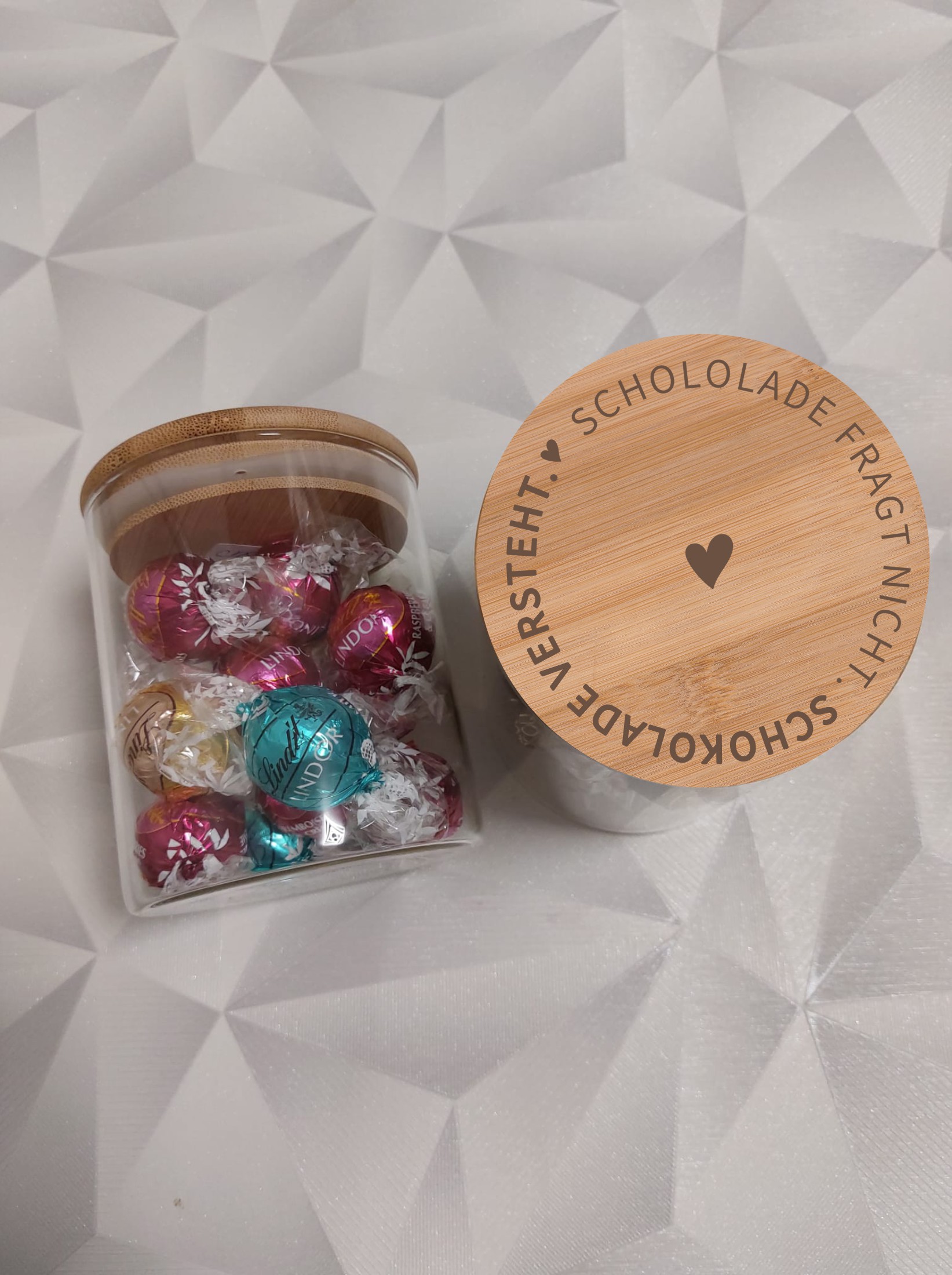 SCHOKOLADE fragt nicht. SCHOKOLADE versteht. 🍫 Naschglas personalisiert