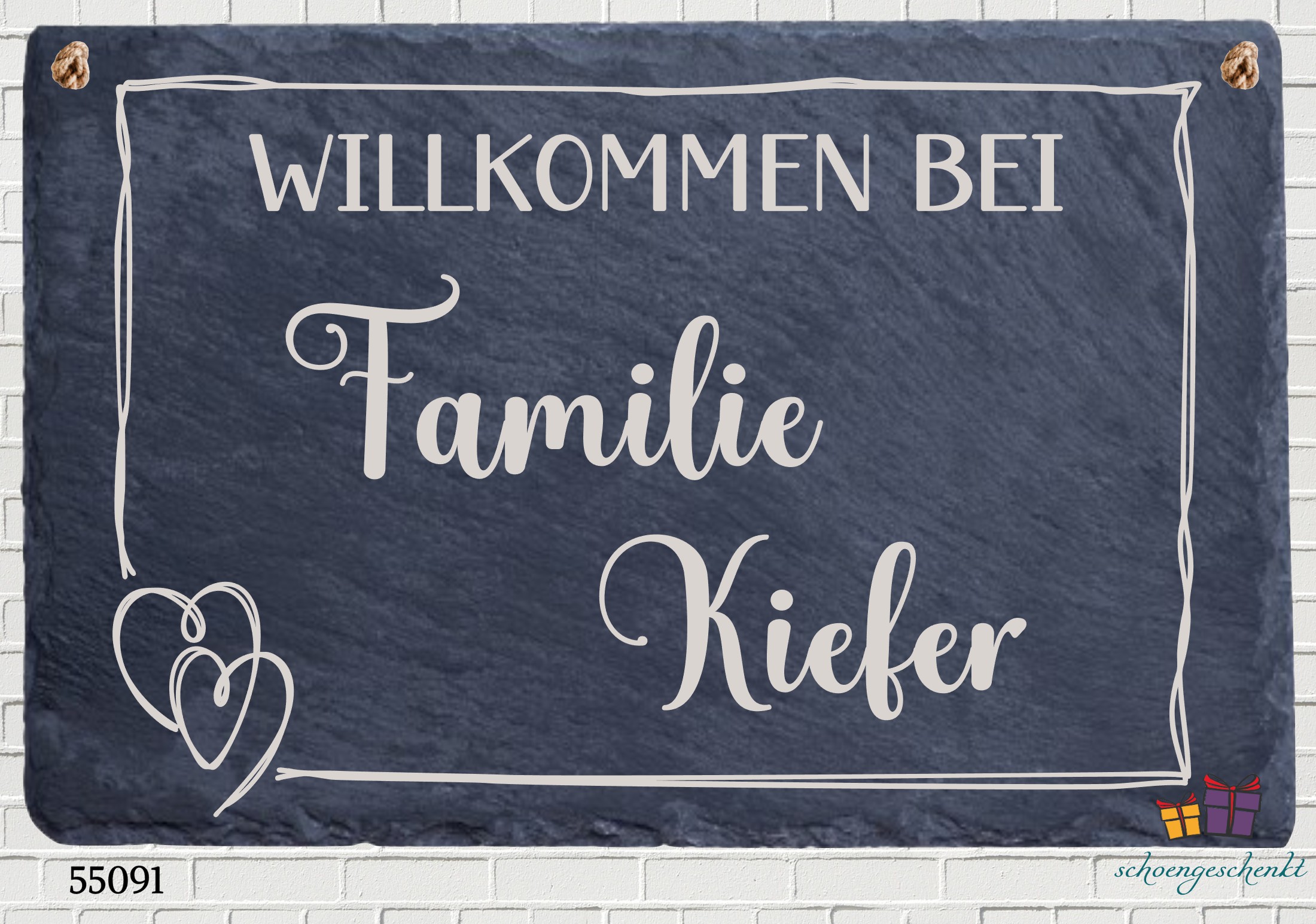 Schieferplatte Willkommen bei Familie Hoffmann 🏡 30×20 cm