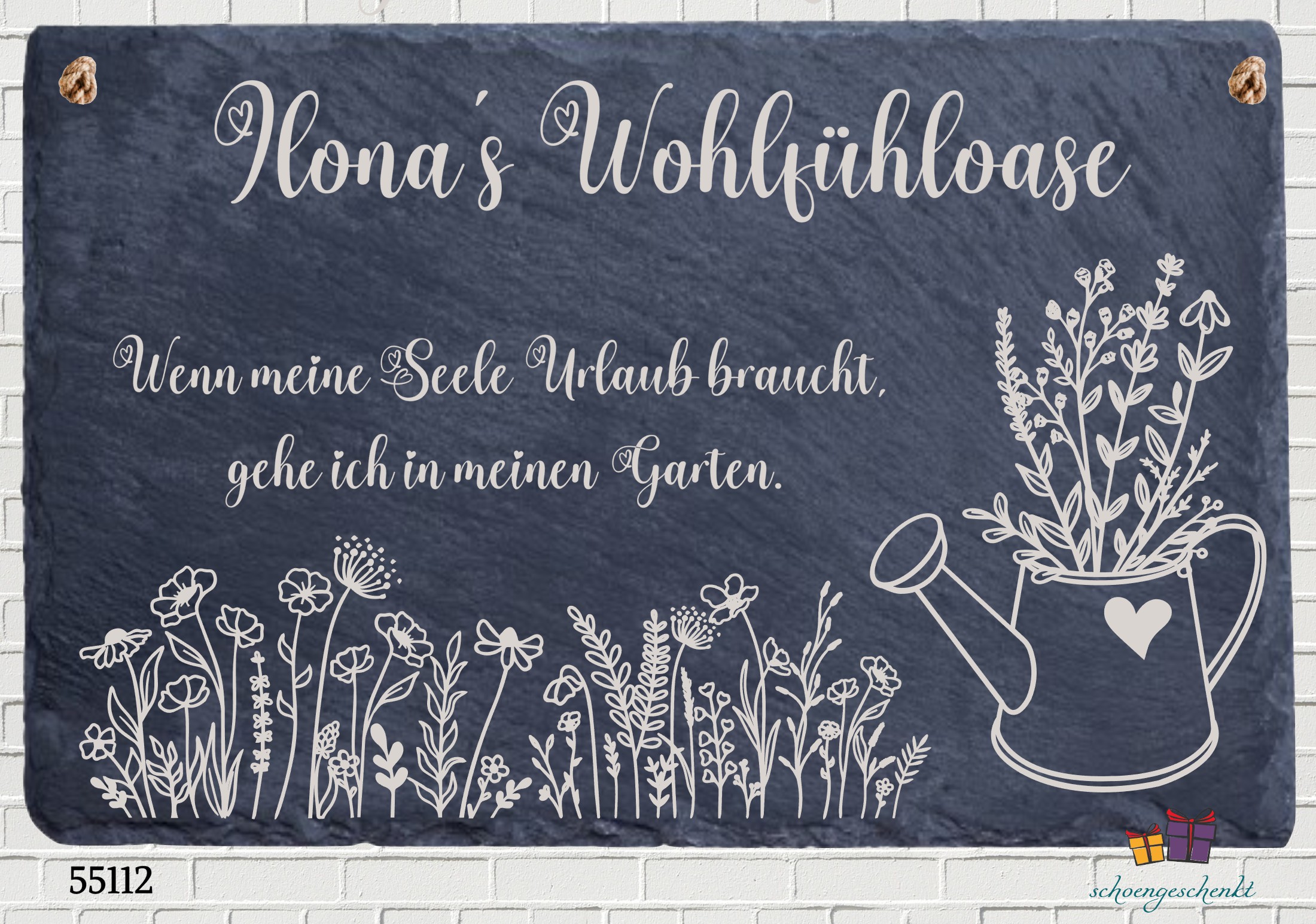 einem charmanten Spruch und der Möglichkeit zur Personalisierung "(Ilona´s) Wohlfühloase" wird sie zum