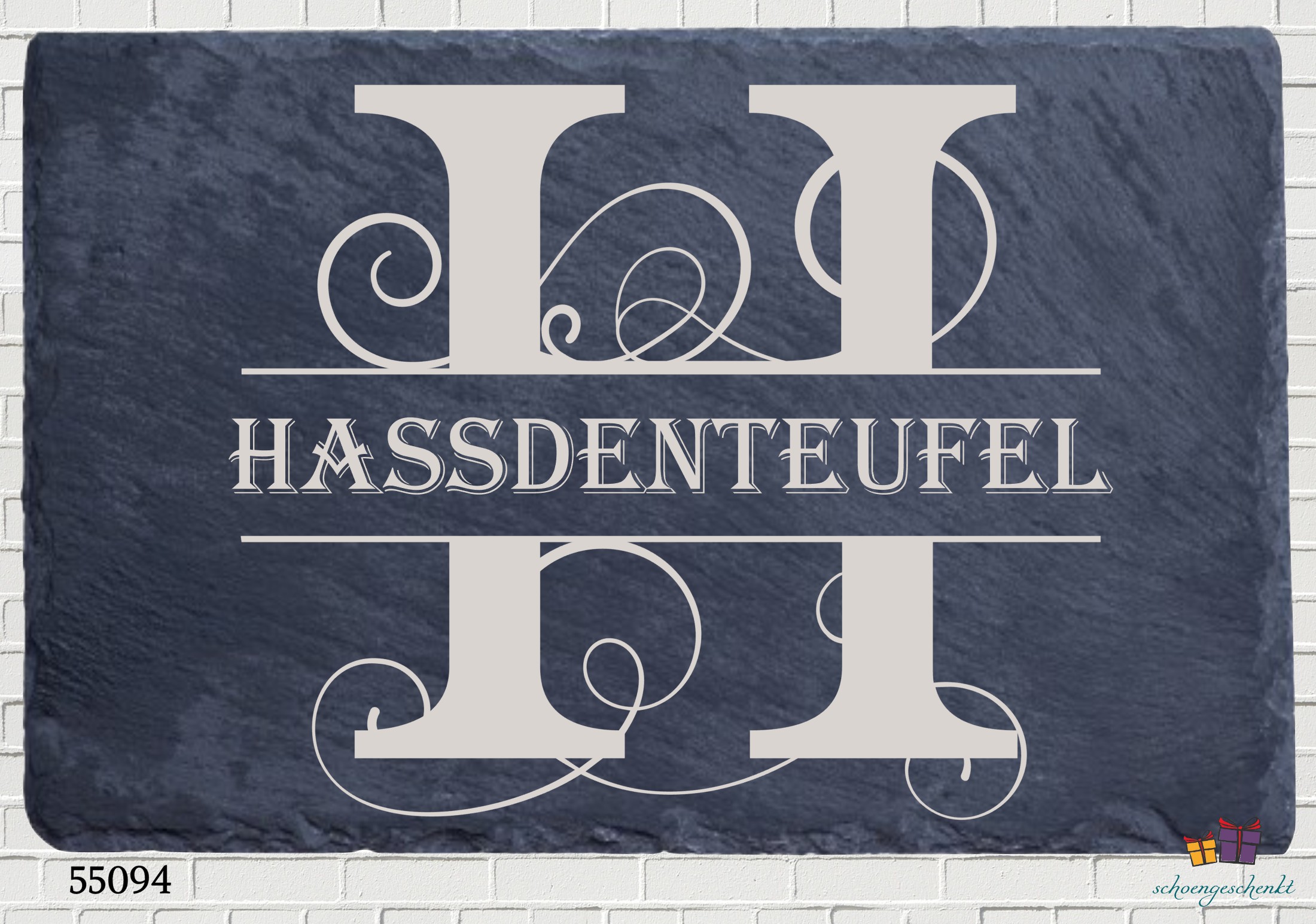 Schieferplatte mit Monogramm – 30×20 cm 😺 30×20 cm