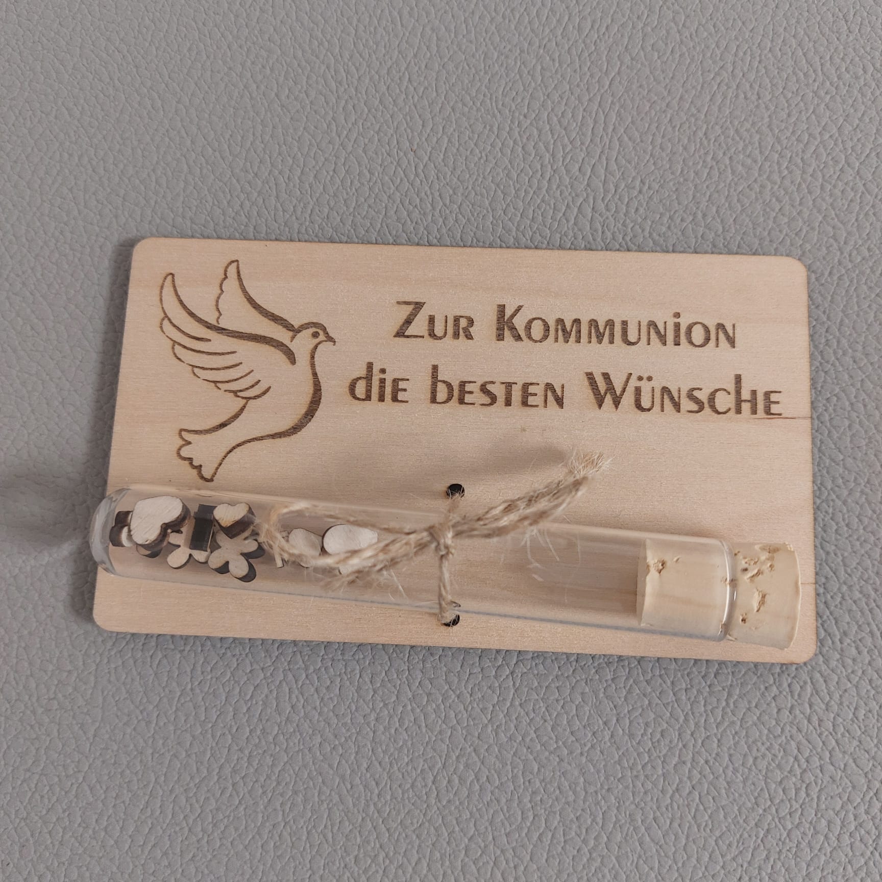 Mit zarter Gravur, dem Design „Zur Kommunion die besten Wünsche“, einer 🕊️