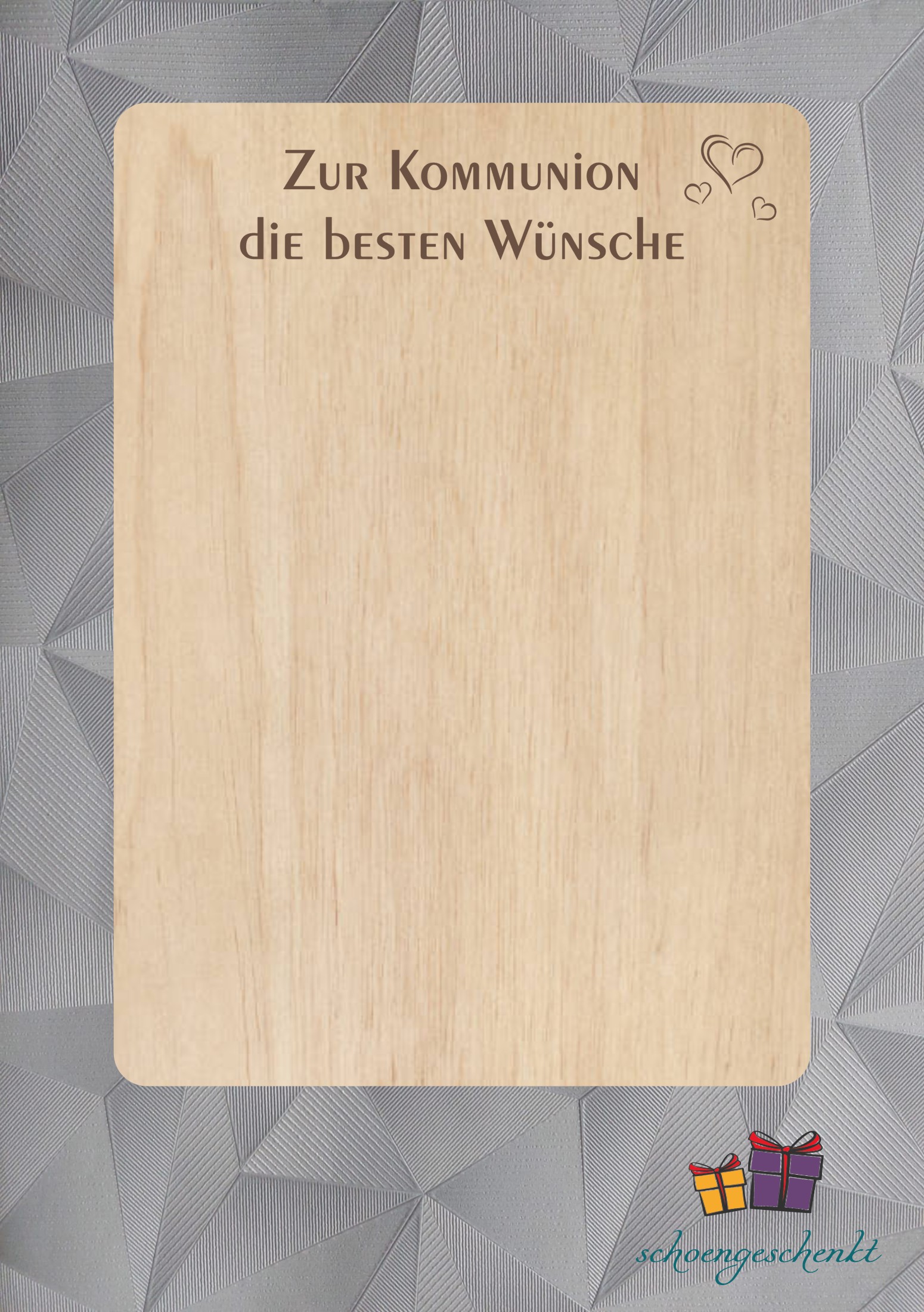 Diese große Geldgeschenkkarte aus Holz ist mehr als nur eine Verpackung – sie ist ein liebevoller Botschafter der Freude. Das fein gravierte Design mit dem "Namen des Kommunionkindes und das Datum", ergänzt durch eine 🕊️ Taube in den Händen als Symbol des Glaubens, macht diese Karte zu einem bleibenden Erinnerungsstück voller Herzenswärme.